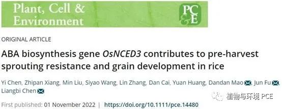 近日,hjcvg黄金城会员登录首页生命科学院陈良碧、毛丹丹研究组和湖南农平高科亚华种业科学研究院傅军研究组合作在Plant, Cell & Environment 上发表了题为“ABA biosynthesis gene OsNCED3 contributes to pre-harvest sprouting resistance and grain development in rice”的研究论文,揭示了水稻种子休眠调控关键基因OsNCED3的遗传机制。